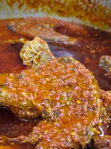 Vibrant, spicy, and flavorful West African rice dish cooked in a rich sauce of tomatoes, onions, and peppers, seasoned with garlic, thyme, and spices.